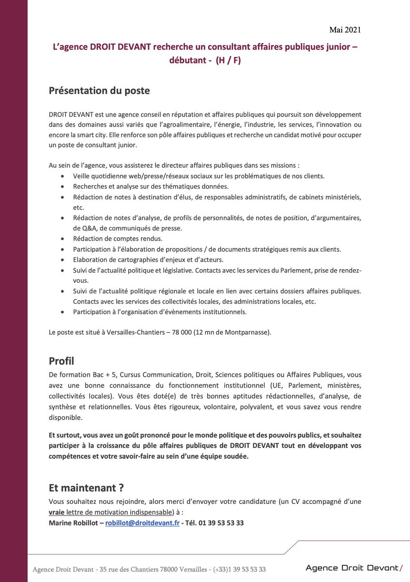 visitez l'article complet ici : https://www.qapa.fr/news/exemple-lettre-de-motivation-agent-dentretien-maintenance-polyvalent-en-collectivite/ Telechargez cet exemple de lettre de motivation pour le poste de agent polyvalent de mairie. Véritable expert de la propreté, l'agent d'entretien contribue à maintenir votre lettre de motivation reviendra succinctement sur votre cursus scolaire et indiquera vos principales qualités comme la polyvalence, la mobilité, le sens. Candidature au poste d'agent d'entretien pj :